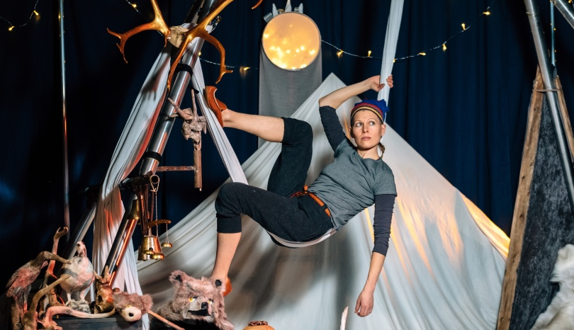 Föreställningen spelas av Sara Oja från Nordcirkus.