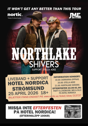Från countrycovers på sociala medier till en av Sveriges snabbast växande countryakter – Northlake Shivers har snabbt fångat publikens hjärtan. Den 25 april kommer de till Hotel Nordica i Strömsund, tillsammans med Stella Adee, för en kväll fylld av livemusik och fest.